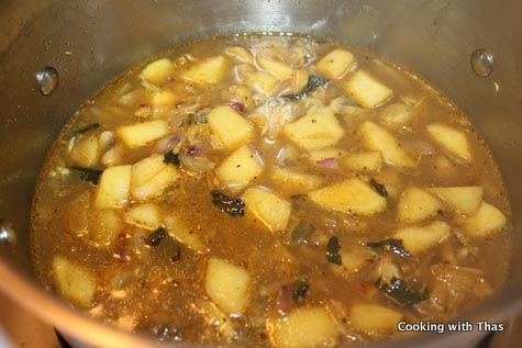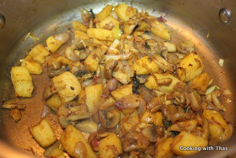 - Add mushrooms and apples to the pan, saute till everything starts to turn light brown in color.