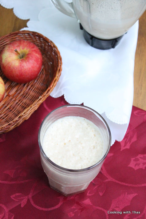 Last night I tried combining apple and dates, as I didn’t have any other fruits left in my refrigerator. Pureed apple and dates along with milk and vanilla extract. I couldn’t get over the taste of this smoothie: it was rich, creamy and extremely delicious.
