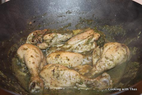 - Turn the heat to medium high, let the sauce thicken and starts to stick to the chicken.