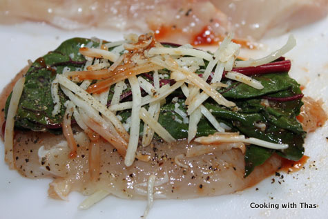 - Swiss chard or spinach- 1 leaf/chicken breast or a few spinach leaves