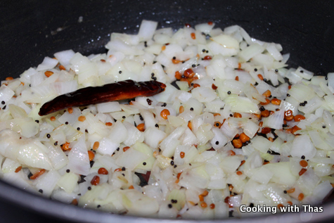 • Add curry leaves, onions, little salt and saute till onions turn tender.