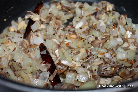 10. Now, add the ground coconut mixture and saute for few minutes.