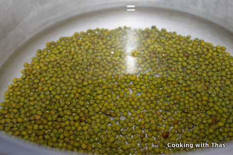 • Wash Mung bean taken in a strainer under running water and cook it in a pressure cooker with enough water and salt until it’s cooked well. keep aside.