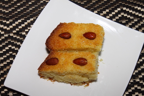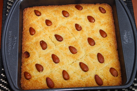 This is an easy to make sweet cake made with semolina. The batter can be made by just combining all the ingredients using a spatula, no need of stand mixer or electric hand mixer. After 30 minutes of baking, the cake looked absolutely beautiful with golden colored top and browned sides. As soon as the cake is taken out of the oven, we need to pour the sugar syrup over the cake. The cake turned out very moist and I enjoyed the coarse texture of the semolina. The cake itself isn’t too sweet, so those who lack sweet tooth can enjoy this cake without the sugar syrup. I added orange blossom water to the sugar syrup, enhanced the taste of this cake greatly. I shared this cake with my friends at work, everyone had only one thing to say: “Absolutely delicious!”