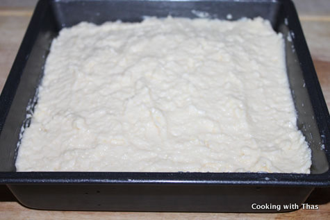 - Add the semolina mixture to the buttermilk and sugar, combine well using a spatula.