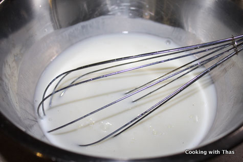 - Into a large bowl, add buttermilk and sugar using a whisk till the sugar dissolves in it.