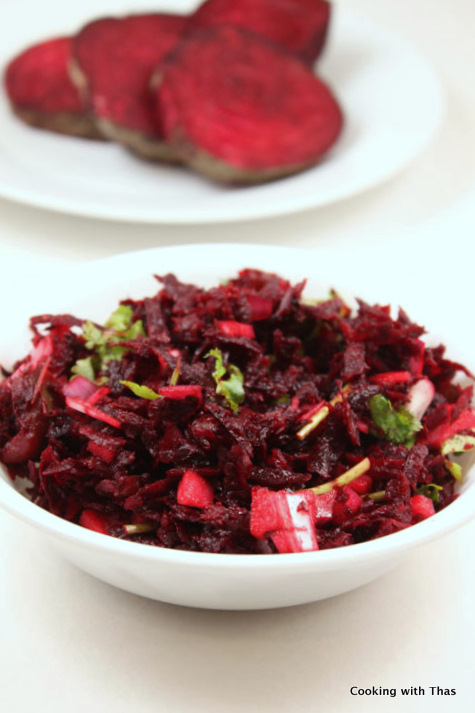 Yesterday, raw fresh beetroot was my pick. I adore the purple color, the earthy flavor and the crispiness of beetroot. Well, to enjoy raw beetroots to the fullest, I have to season it a bit. Here is how I like to have my raw beetroot. Believe me, this beetroot salad tastes delicious and make a colorful side for any meals.