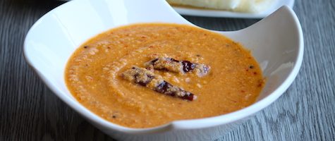 Many South Indian dishes are served with chutneys especially Dosa & Idlis. Chutney is comfort food with its spicy and tangy taste. There are a few chutneys that can be made without the addition of coconut. However, my favorite is chutneys made with coconut. In this recipe, I’ve also added onion & tomato and whole red dried chilies impart the required heat.