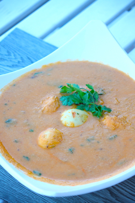 This gravy is rich, creamy & delicious. Before adding the hard-boiled eggs to the gravy, I’ve marinated the eggs with a spice mix & pan-fried them- this way the eggs turned out flavourful. This step can be skipped & the hard boiled eggs can be added to the gravy without pan-frying.