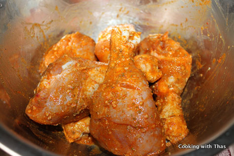 - Chicken legs or Bone-in chicken pieces- I used 5 chicken legs, you could add more pieces
