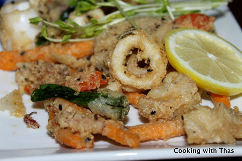 Fried Calamari: Along with fried carrots, scallions, red pepper and Japanese potatoes.