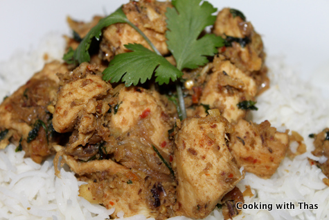 - When the chicken has cooked well, remove the lid and stir fry till the chicken gets browned and all the water evaporates.
