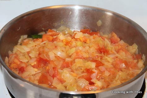 9. Pour the onion-tomato puree to the butter, saute for a couple of minutes.