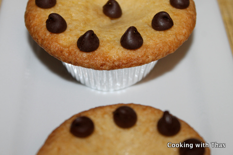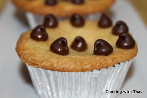 • For a fancy look, I decorated the cupcakes with semi-sweet chocolate morsels, which will slightly melt from the heat of the cakes.