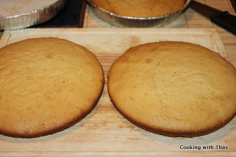 For making the cake I followed the recipe without adding the rum, but for the butterscotch sauce I only made half the amount of what is mentioned, it was good enough to spread the top of each cake. If you are making a three layer cake, you’ll be using all of the frosting. If you are making only 1 or 2 layered cakes, reduce the amount of ingredients accordingly.