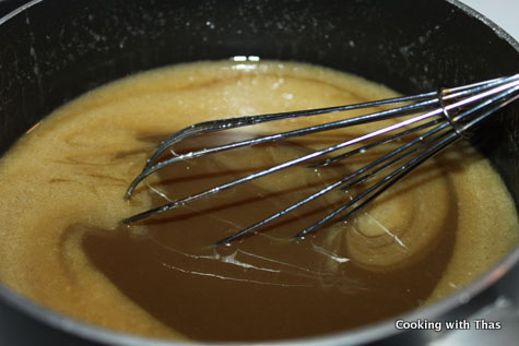 - Mix sugar, butter, corn syrup, and salt in a small saucepan over medium heat, and cook, stirring, until sugar dissolves.