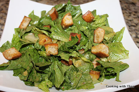 After adding romaine lettuce and croutons