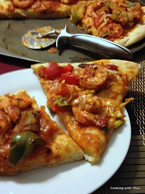 Chicken, ground beef and veggies are the usual toppings I prefer while making pizzas. So, this time I wanted something different, for that reason shrimp was my pick. I like a bit of spiciness in my pizza, so I chose cajun seasoning and also sprinkled a dash of red chili flakes over the pizza. Overall, I loved the taste of this pizza, cajun shrimp tasted delicious and was quite unique.