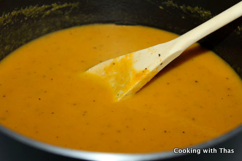 7. Transfer the pureed carrots back to the pot and simmer for few minutes.