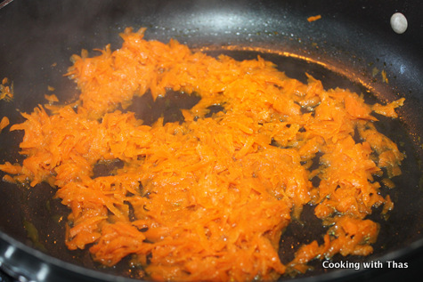 - Add 3 tbsp ghee, add the grated carrots into it and saute for a few minutes.