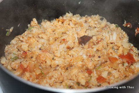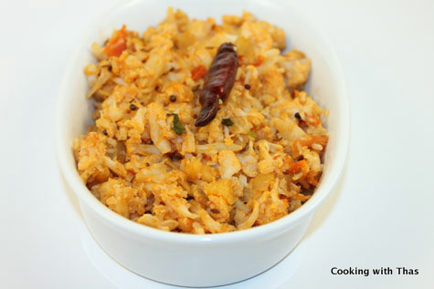 Ironically this dish is called cauliflower rice or cauli rice, but there is no rice in it. It’s made using just cauliflower florets which has been smashed into tiny pieces which apparently gives the look of rice. Since it’s been already named as cauli rice I am not trying for a name change here.