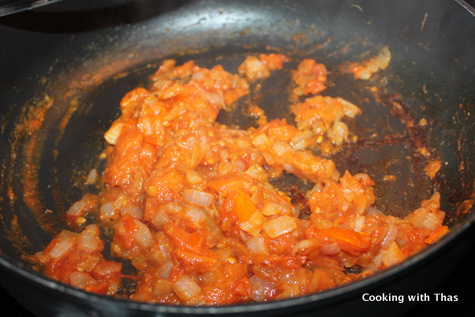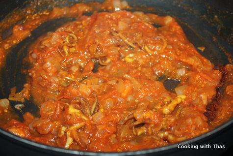 • Add coriander powder and chili powder, combine well and cook for sometime.