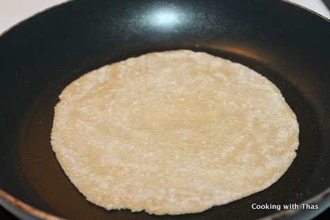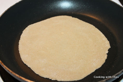 • After placing the rolled dough on the hot pan, flip the dough over before the bottom side gets cooked or brown spots start to appear. You don’t need to cook the bottom side at this point it should just get hot.