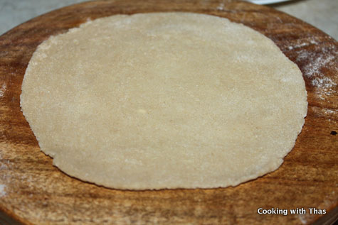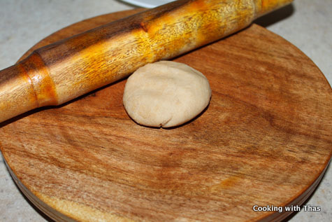 • Sprinkle some wheat flour and using a rolling pin roll it to a round shape.