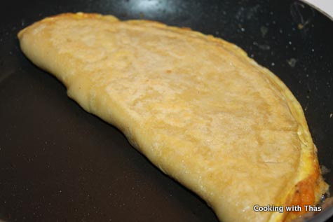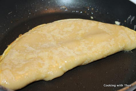 - Cook the eggs till it is set over the crepes and it is no more watery on the top.