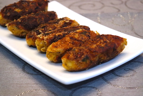 This time I made the cutlet kabobs. It’s basically like making cutlets, however, in this one I’ve added the egg & breadcrumbs to the chicken filling, rolled the filling & pan-fried it.