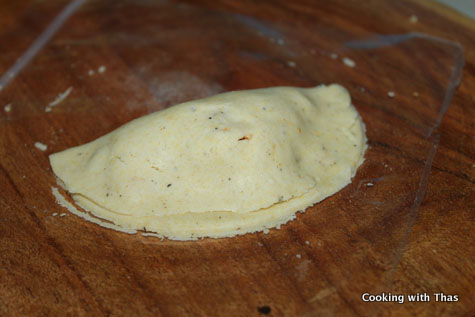 - I tried rolling the dough on a floured board, the dough cracked a lot, hence I tried the following method which worked well for me.