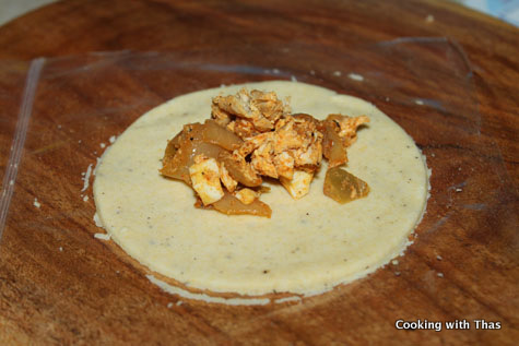 - Place 1 tbsp of filling on the dough. Don’t overstuff as the dough will break apart.
