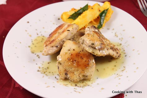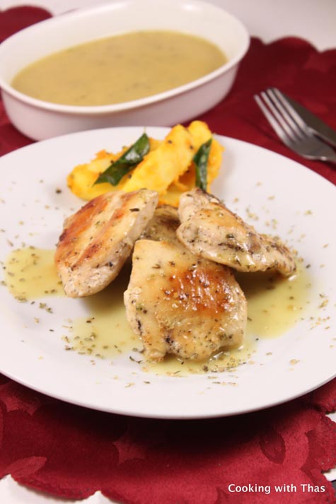 - Place the pan fried chicken on a plate, pour the sauce over the chicken, if you want sprinkle some dried oregano and serve with your favorite salad or side.