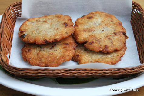 The other day while making fried orotti, I made a twist by adding chicken while making the rice dough. Rolled the dough into small patties and fried it. I have no words to express how delicious these fried chicken orotti tasted. I have to tell you that frying makes these crispy and flavorful. However, if you are too concerned about frying you could even cook it just like regular rotis. I have to tell you that it wouldn’t be that tasty as fried ones though.
