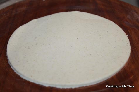 - If you have tortilla maker or poori maker you can flatten the dough in that, else roll the dough using a pin.