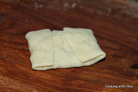 Fold the chicken stuffed dough