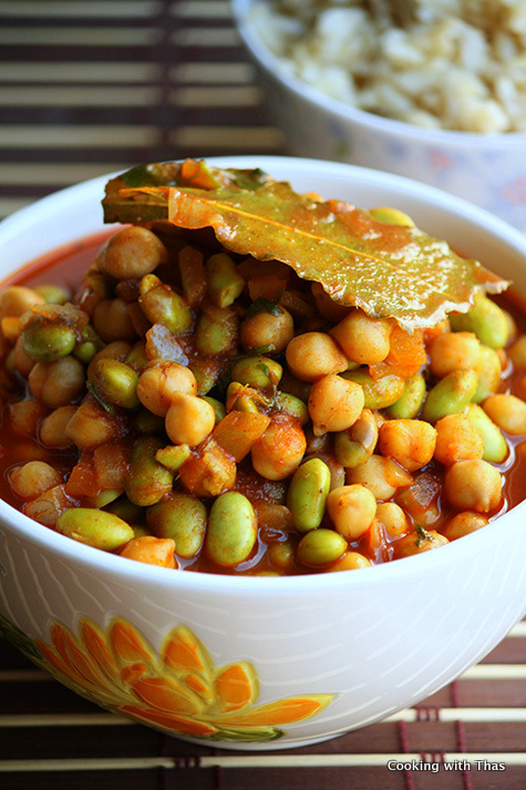 This is a healthy and protein rich chickpeas and edamame stew, that can be served with rice or rotis. If you haven’t introduced edamame in your diet, it’s high time you include that. Edamame is a young soybean, rich in fiber, protein and various minerals.