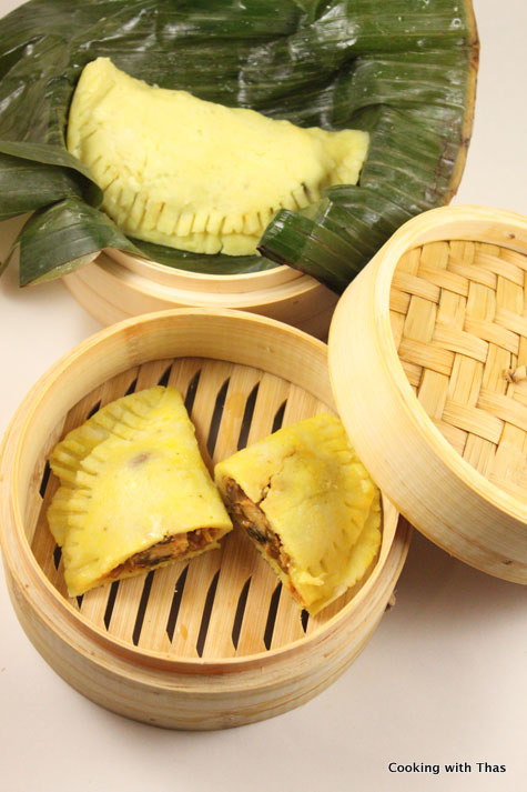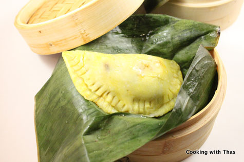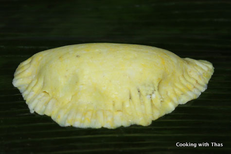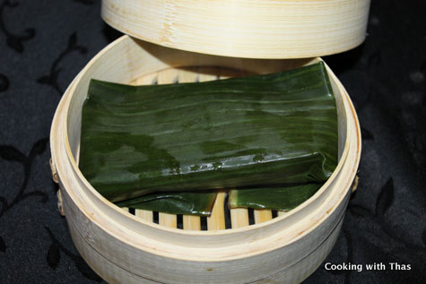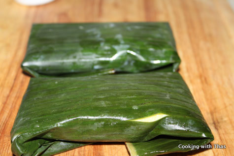 - Wrap the stuffed dumpling with banana leaf, keep aside.