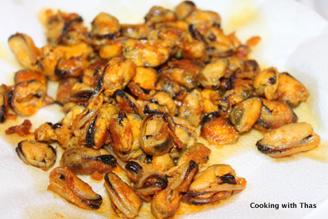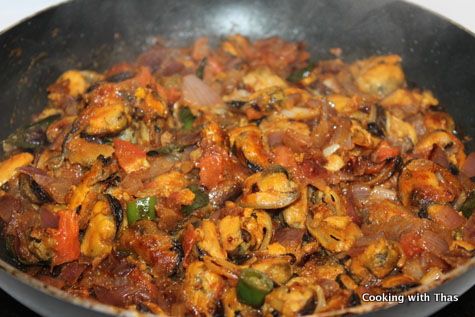 - Put the shallow fried mussels to it and cook for a couple of minutes.