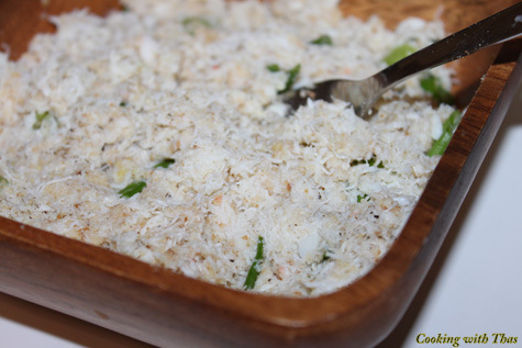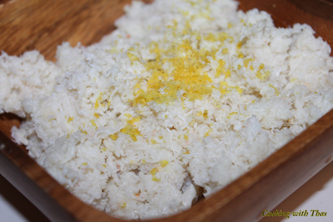 - In a medium bowl, combine the crab meat, lemon zest, scallions, bread crumbs and ground pepper until evenly incorporated with spoon and keep aside. Don’t over mix the meat.