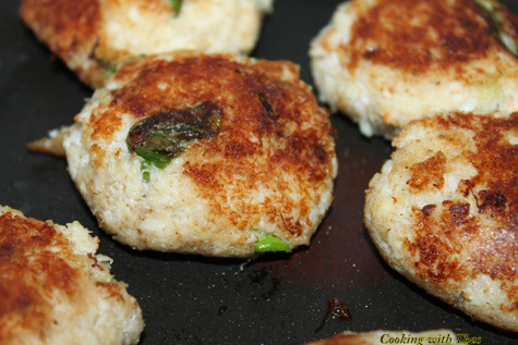 - Make medium sized balls out of the mixture and flatten the balls in between the palm of your hands.