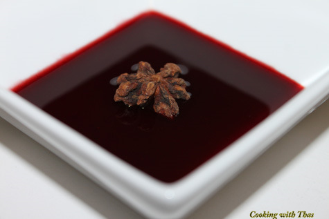 - In a sauce pan, add the pomegranate juice along with ginger, star anise seed, lemon zest.