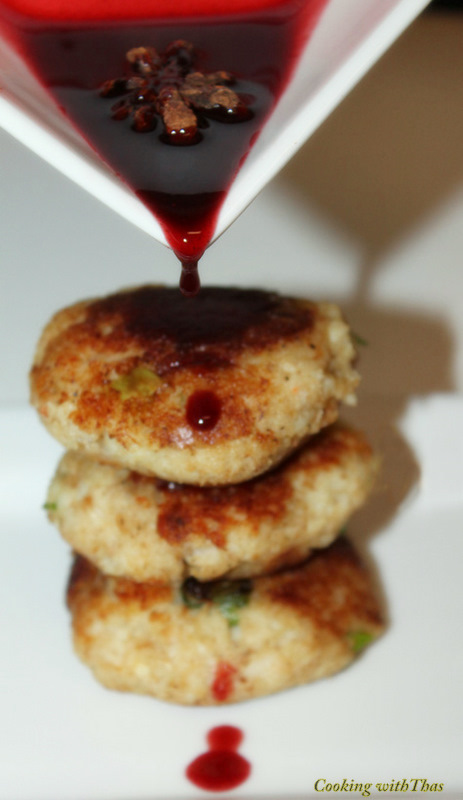 Here is the step by step instructions of making the Pomegranate sauce and the Crab Cakes.