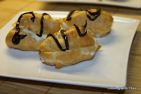Cream puffs can be made in different shapes, it can be round or long known as eclairs. It can have different kinds of filling as well: custard, ice cream or whipped cream. I personally love custard filling. It can also be drizzled with chocolate syrup, vanilla glaze or other glazes. No matter how you make it, the end result will be delicious!
