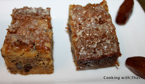 - Spread the caramel sauce evenly over the cooled dates cake.