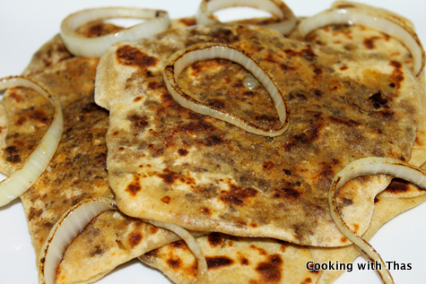 Ground Beef stuffed and folded Parathas or Flat-bread