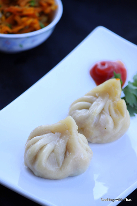Vegetarian Momos- Steamed Dumplings– Replace veg filling with chicken or meat filling