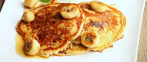 The batter is very easy to make, round cut bananas are placed on the pan and pancake batter is poured over it and cooked till golden and fluffy. The sweetness and the caramelized flavor from the bananas enhance the taste of the pancakes greatly.