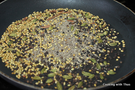 - Let the roasted spices cool down and grind to a fine powder. Keep aside.