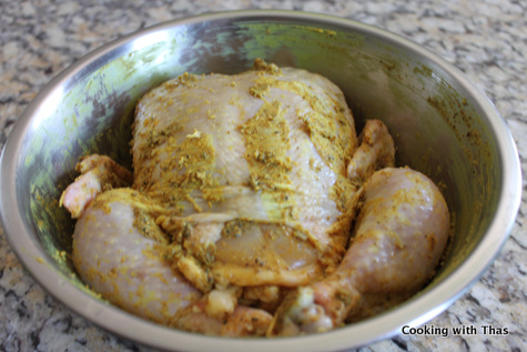 The only work I had to do was marinating the chicken, the chicken was then placed in the oven and all the cooking was done in the oven. The chicken was slow cooked for 1 hour and 45 minutes.